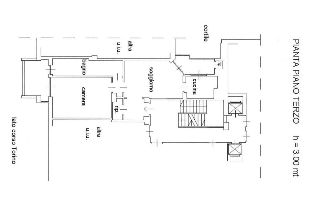 Dal portoncino blindato si accede ad un ingresso dotato di un comodo ripostiglio. Il soggiorCorso Torino in condominio signorile degli anni settanta, appartamento al piano medio. no è spazioso, si affaccia su un balcone lato cortile ed è adiacente ad un ampio cucinino. Anche la camera da letto è di ampie dimensioni ed assieme al bagno si affaccia su un ampio balcone con vista su corso Torino. L'appartamento è allo stato originale, ad eccezione dei serramenti che sono in alluminio bianco con i doppi vetri.